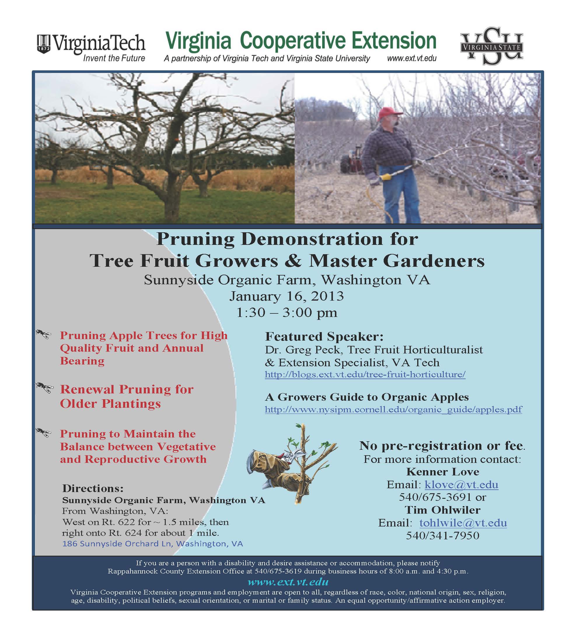 I will be leading a pruning workshop on Wednesday Jan. 16 from 1:30-3:00PM at The Farm at Sunnyside in Washington, VA. Please see the pruning workshop flier for more details.