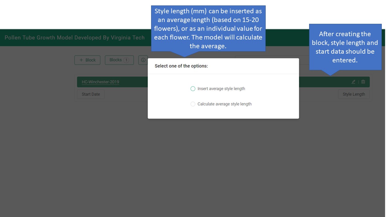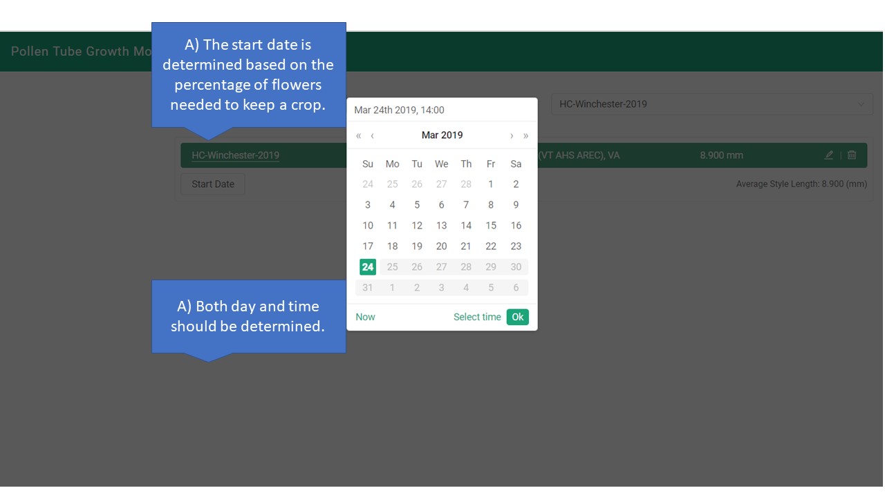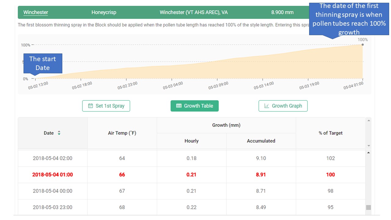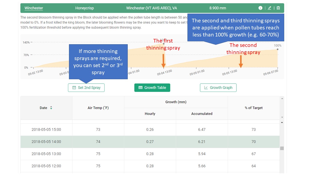 The Pollen Tube Growth Model for Blossom Thinning