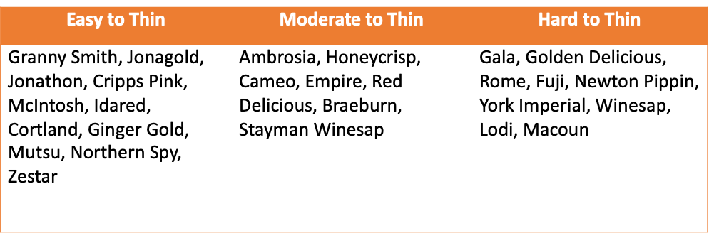 • Vigorous trees are harder to thin compared to compact and dwarf trees.