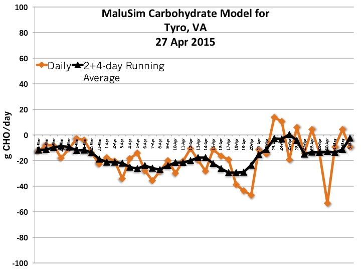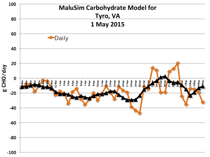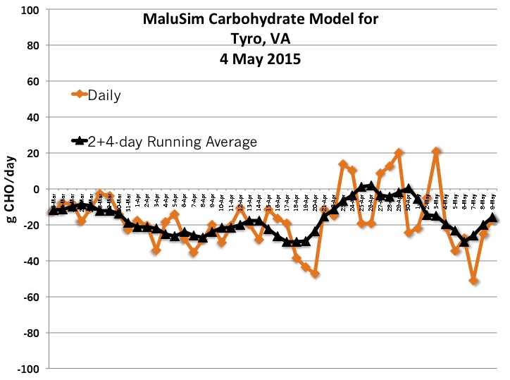 Tree fruit growers in the Nelson County may also face a brief, less damaging frost event, with the lowest temperature predicted to reach 24 oF before sunrise. Based on the current forecast, no frost/freeze is predicted for Roanoke and Carroll-Patrick counties.