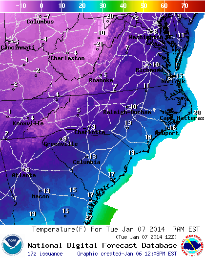 Plants are not affected by wind chills (plants do not lose heat to the wind). But people and animals will be impacted by the heat loss from the high winds that are accompanying this storm. I’ve seen several wind chill forecasts for Tuesday in the -10 to -20F range. If your pruning crews are outside, make sure they are dressed appropriately for the cold. Also, make sure that your farm animals at least have shelter from the wind. For more information on protecting farm animals and equipment from the cold, read Cory Childs’ (VCE-Warren Co.) blog post from earlier today.